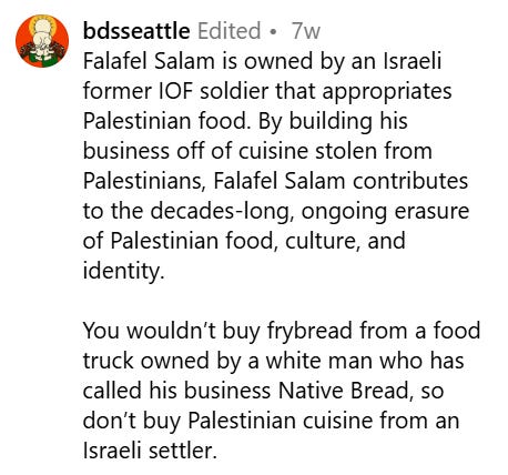 And lest you think that Portland is an unrepresentative blip of the DSA’s priorities, in New York City, the DSA made similar demands of mayor-elect Zohran Mamdani’s incoming administration. Among their requirements is that if NYC ever creates the promised government-run grocery stores, they must not carry Israeli products. Remember, we’re facing an affordability crisis, which is why it’s critical to ensure no Jew profits from your government-distributed feta cheese!
